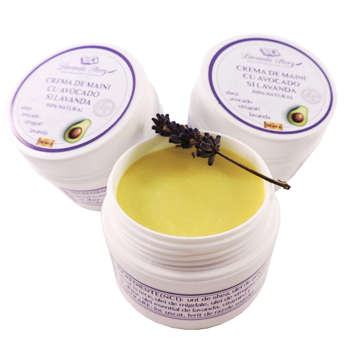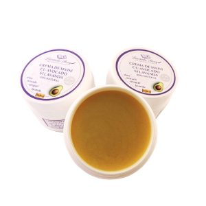 Crema de maini cu excelente proprietati de hidratare si hranire si regenerare a pielii datorita continutului ridicat de ulei de avocado preset la rece, uleiului de migdale, struguri si lavanda.